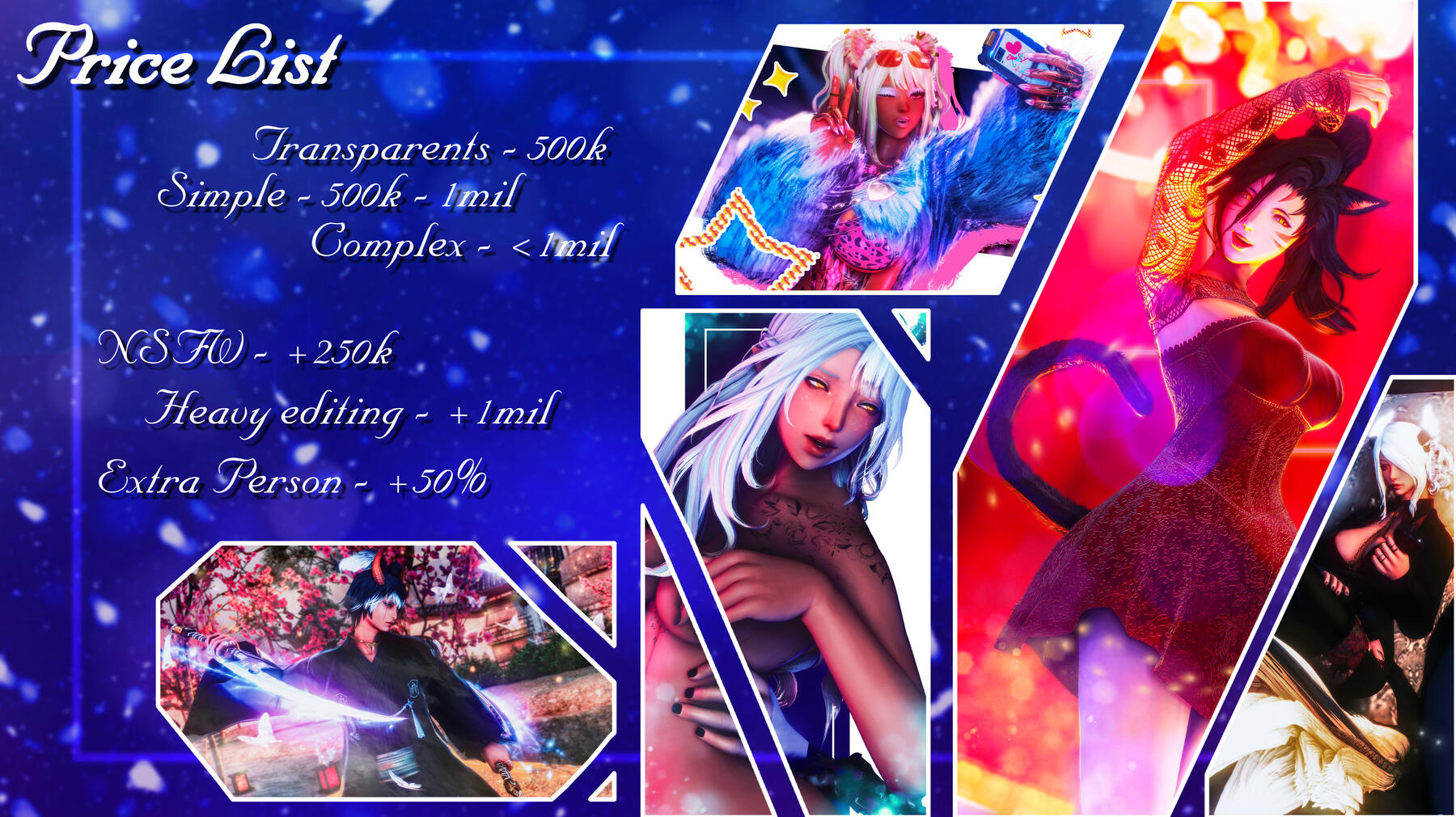Welcome! I provide you with 4K GPoses, high-quality editing, transparent screenshots of your character as well as reference sheets!